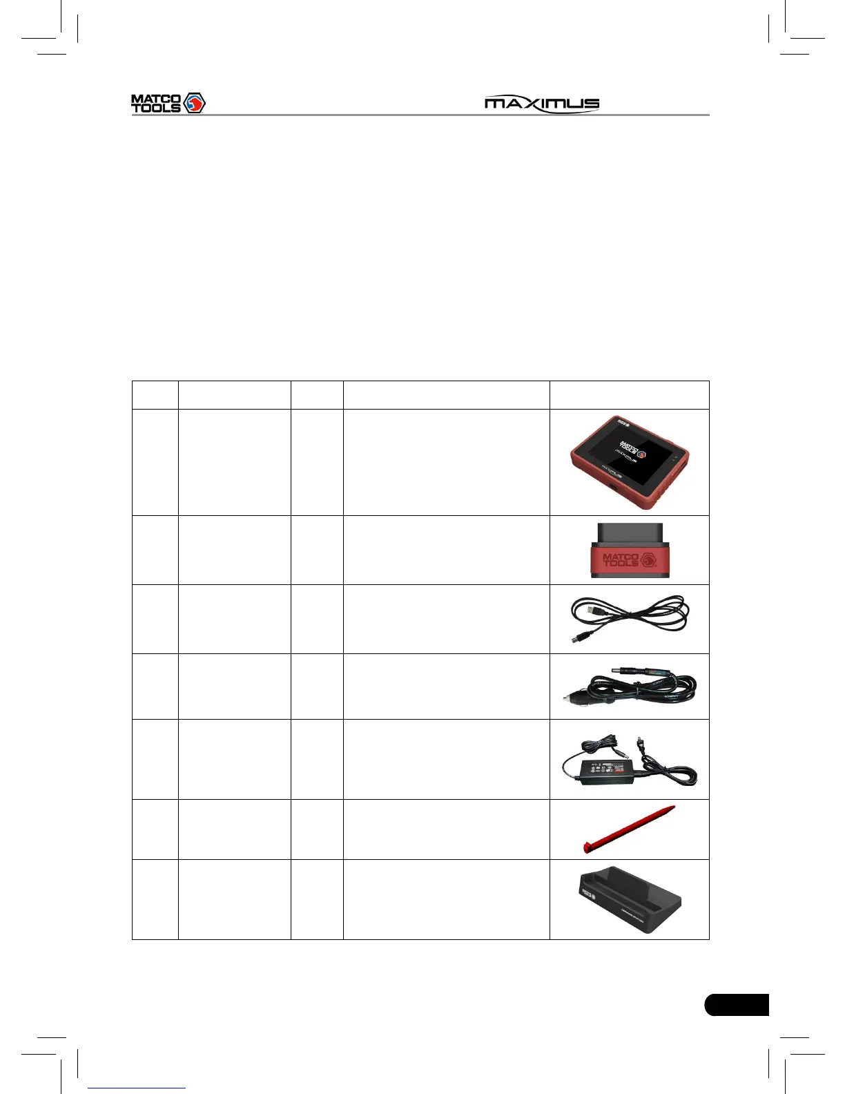 Table 2-3: MAXIMUS common accessories and descriptions