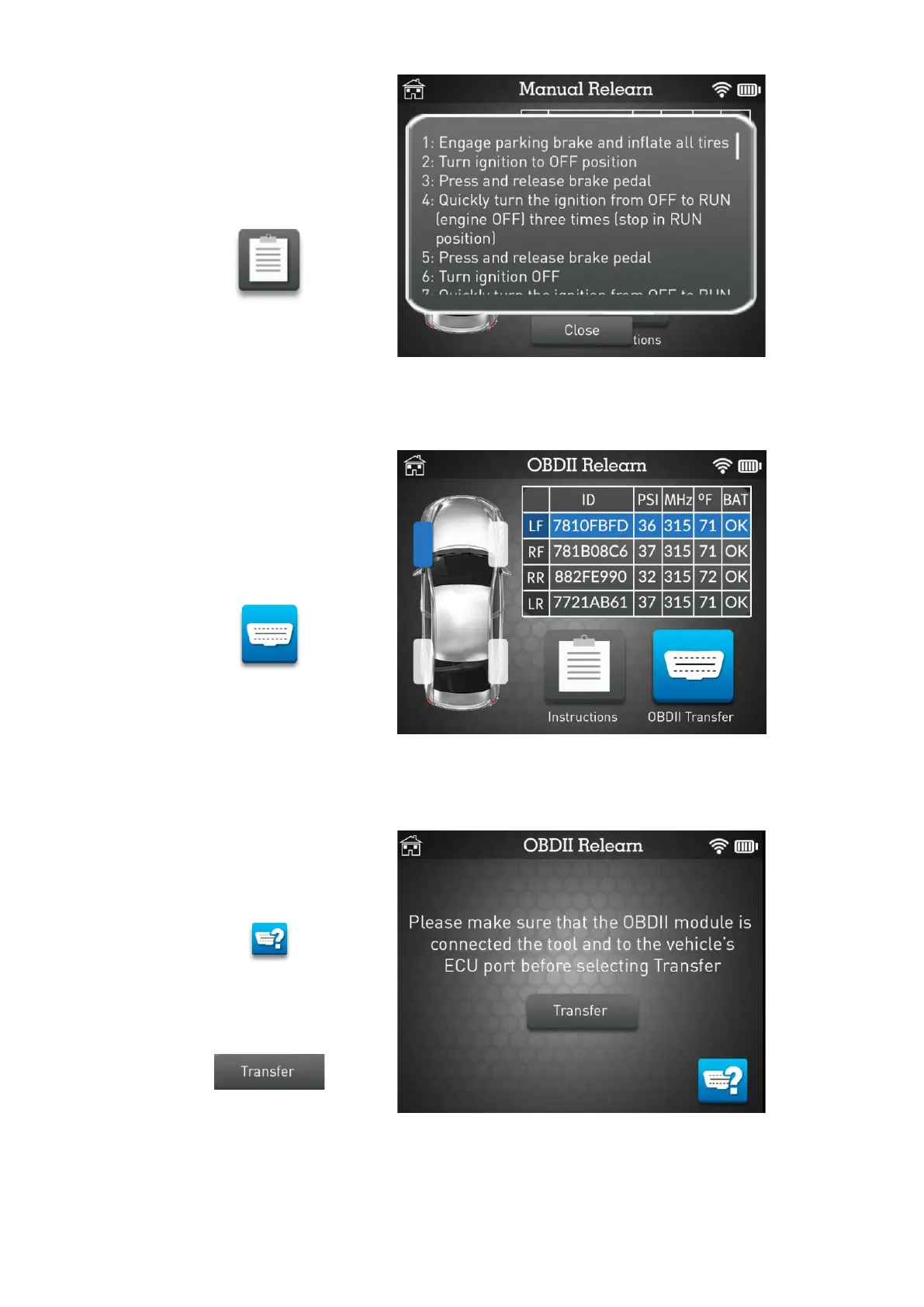 Ensure all the TPMS sensors has been read and click the OBDII Transfer icon to continue.