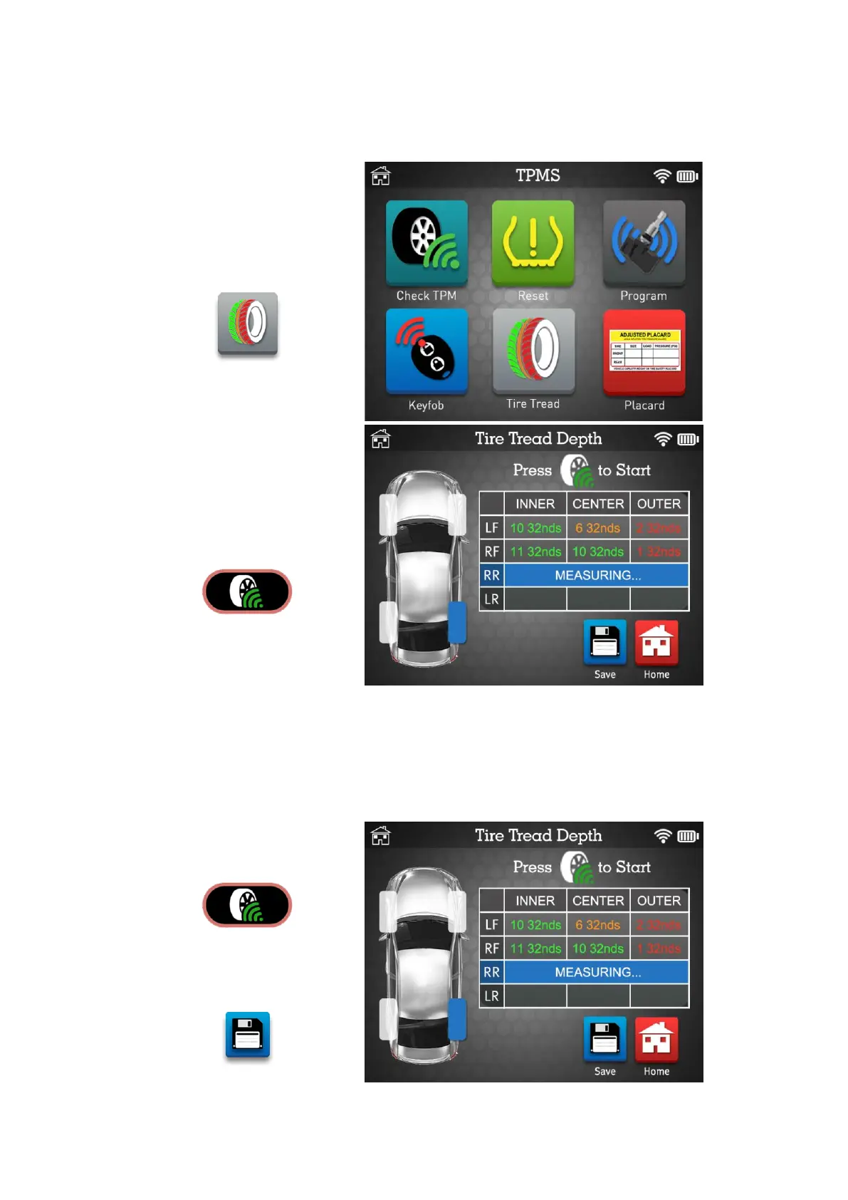 This section is to measure the tire tread depth with the optional TTD gauge.