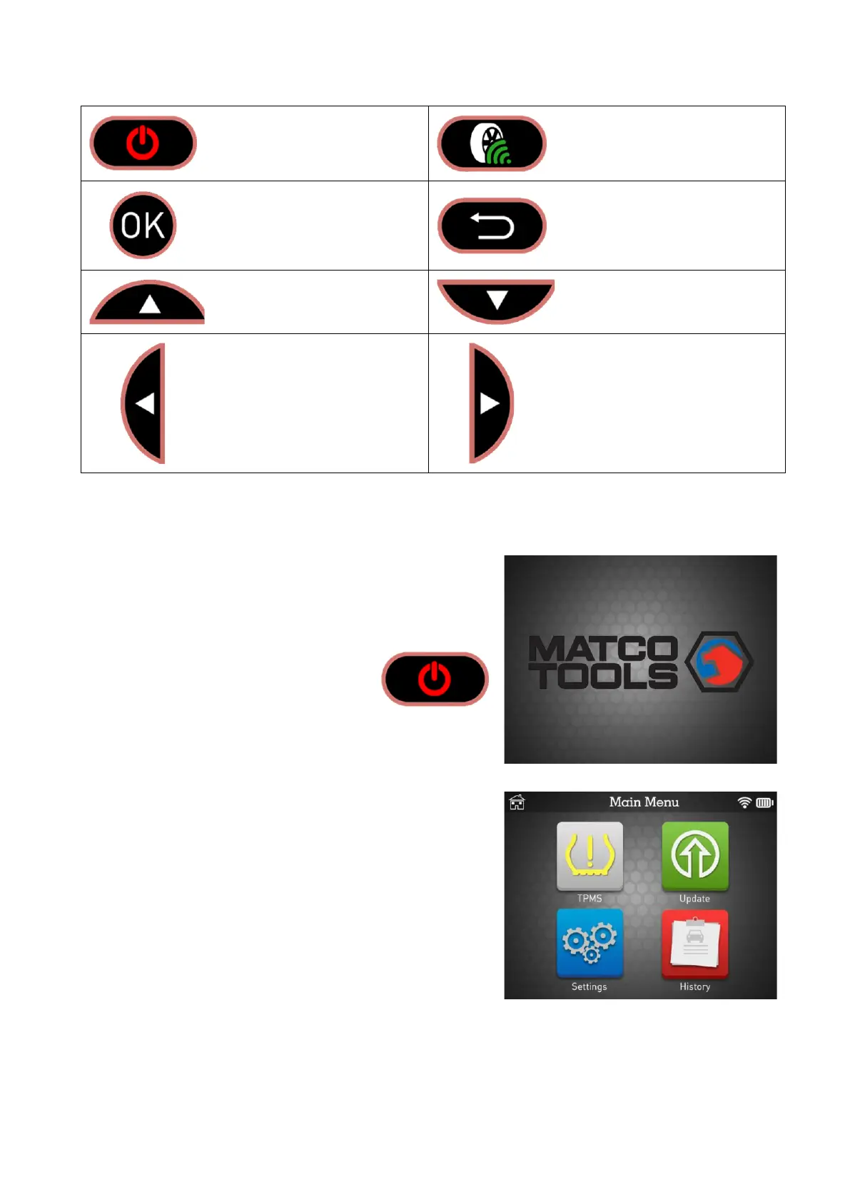 Matco Tools MAXTPMS 2.0 - Function Keys; Power on