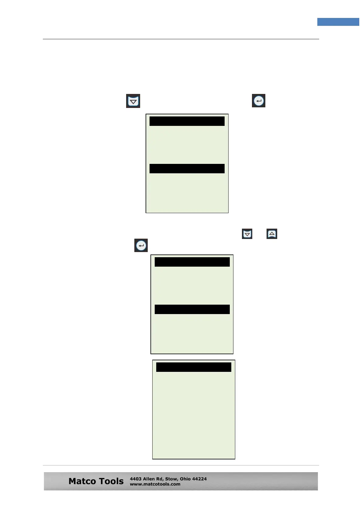 keyed in prior to the test. Select by scrolling or key and