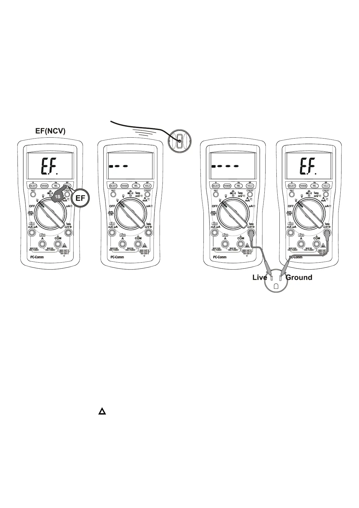 la característica de detección de campo eléctrico (EF). El multímetro muestra “E.F.” cuando está