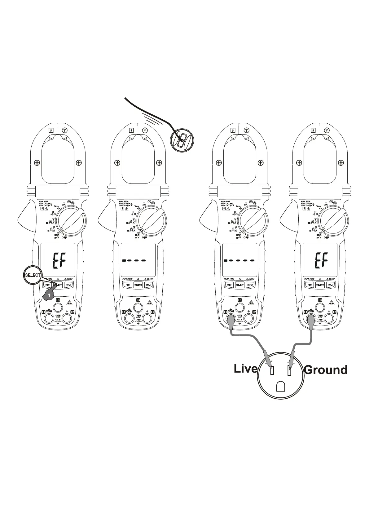 • Detección del campo eléctrico (EF) con contacto de sonda: Para una indicación más precisa de los