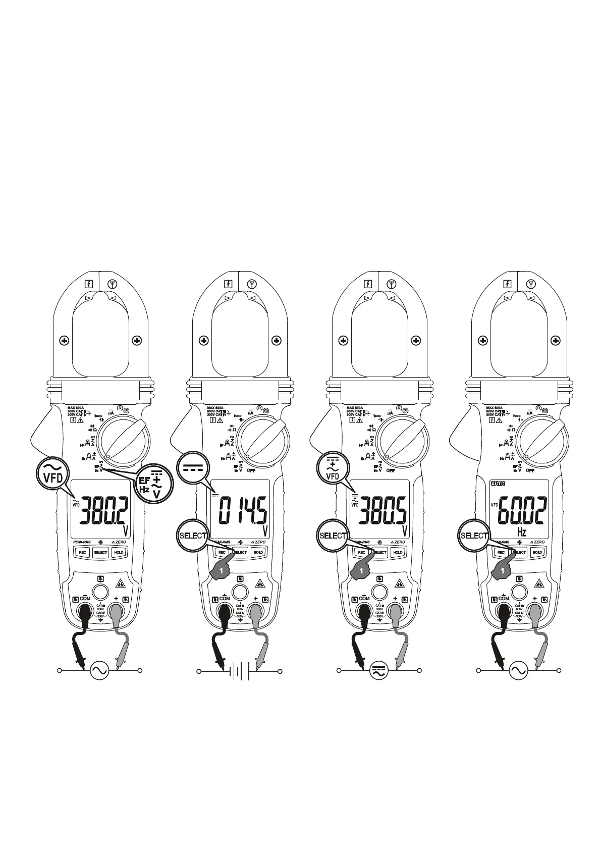 ACV, DCV, DC+ACV Line-level Hz, & EF (NCV) functions