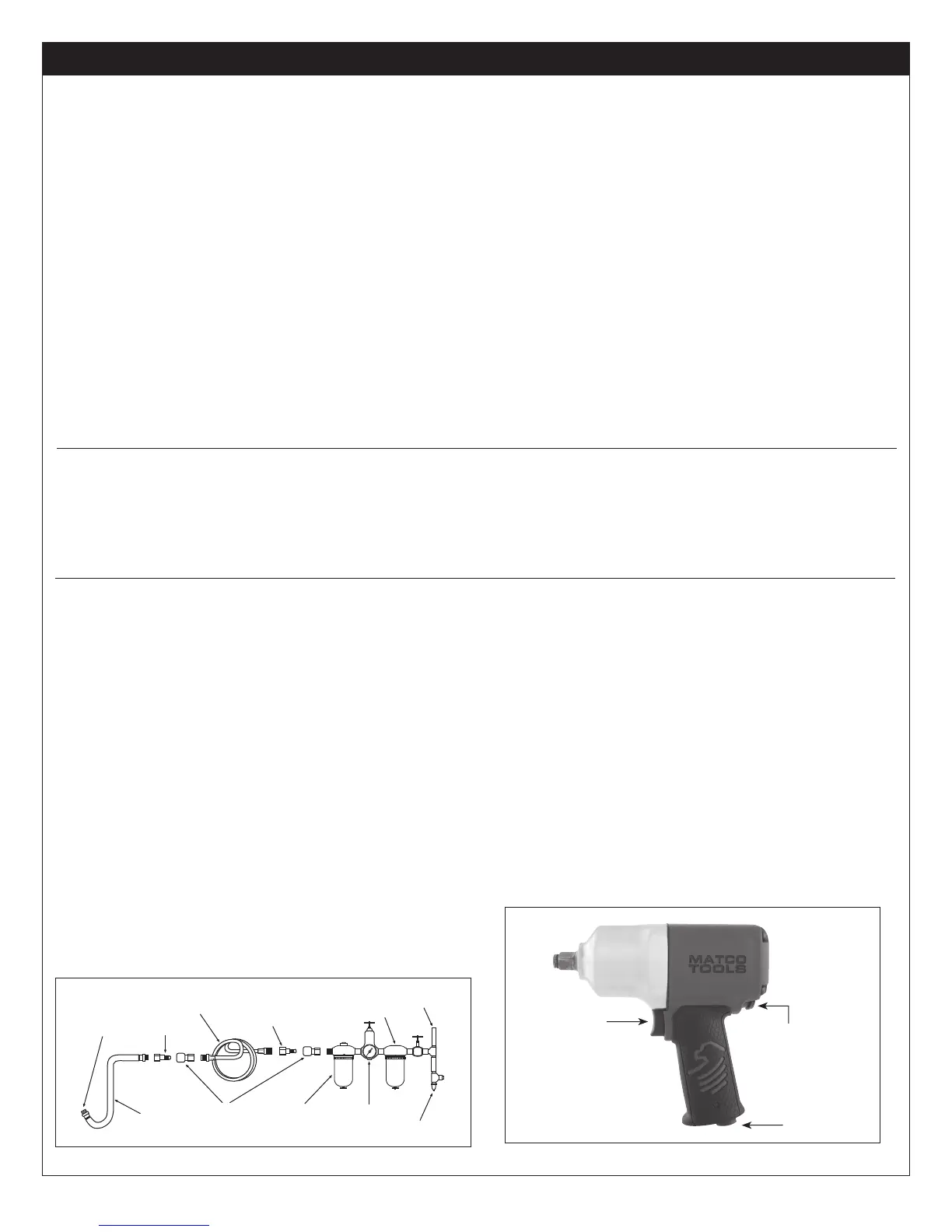 y/o el agua en la tubería de aire dañarán la herramienta. Vacíe