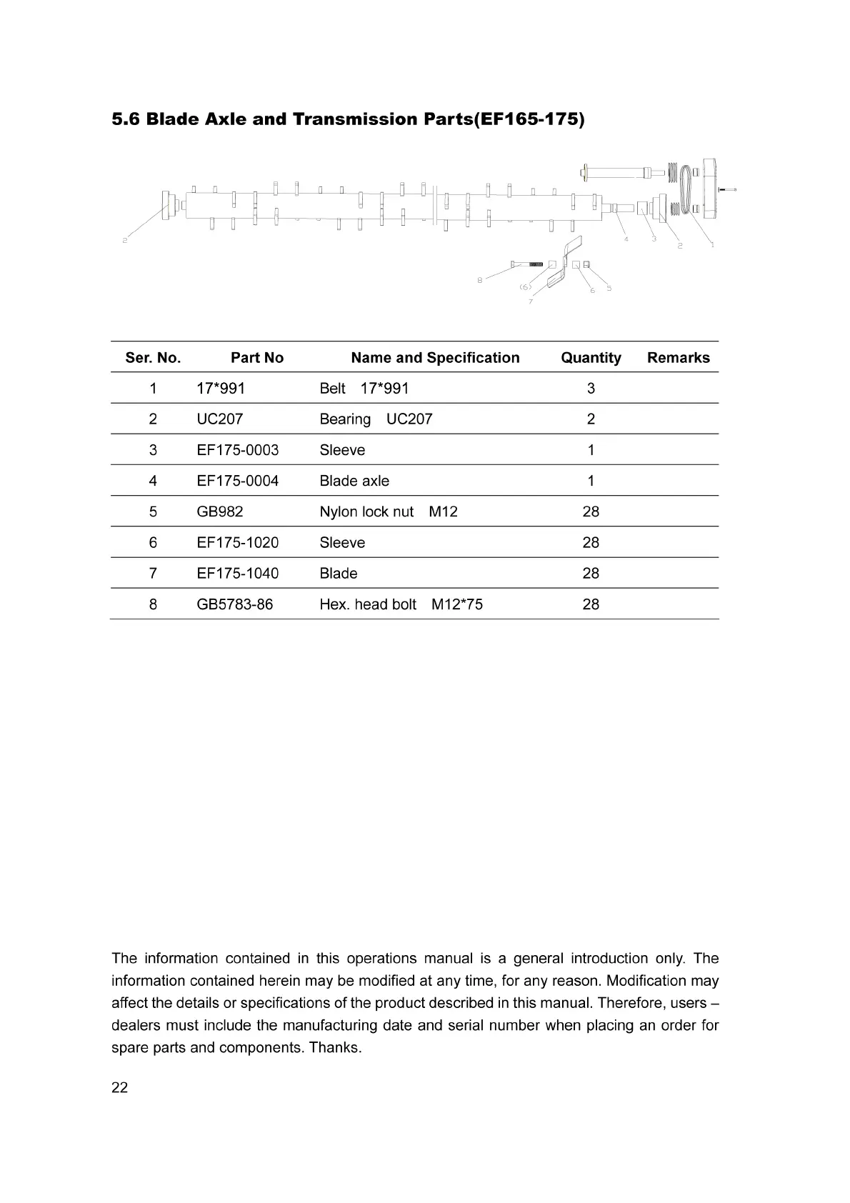 Mateng EF95 - Blade Axle and Transmission Parts(EF165-175)