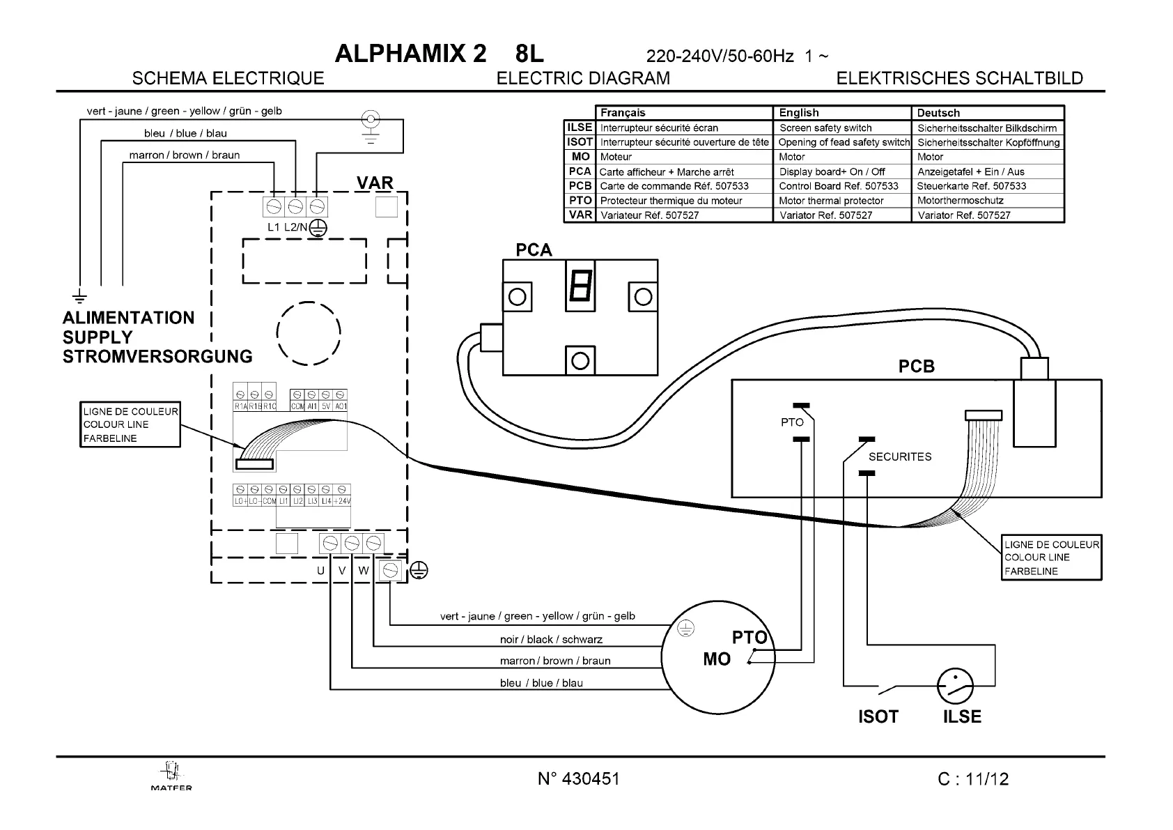 Matfer Alphamix 2 - ELECTRIC DIAGRAM 8 L; Electrical Components Identification; Wiring Connections
