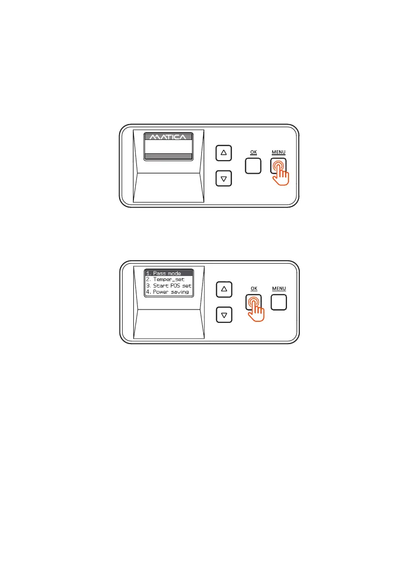 2. Press ‘OK’ when ‘1. Pass mode’ appears on the LCD display.