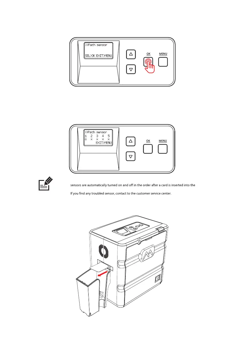 1st sensor turns on when a card is inserted through the feeding slot. #2,#3,#4,#5