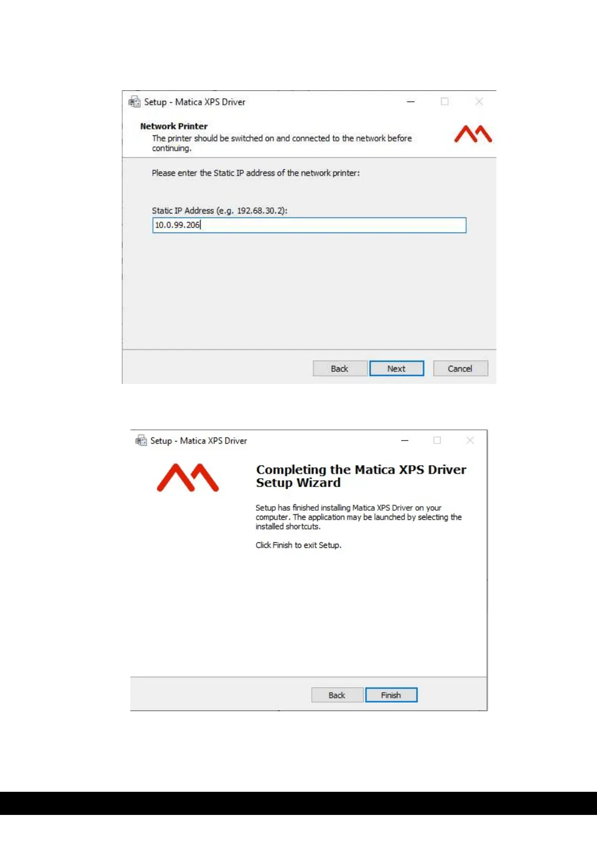 11. Click Finish to complete the Matica XPS Driver Setup Wizard,