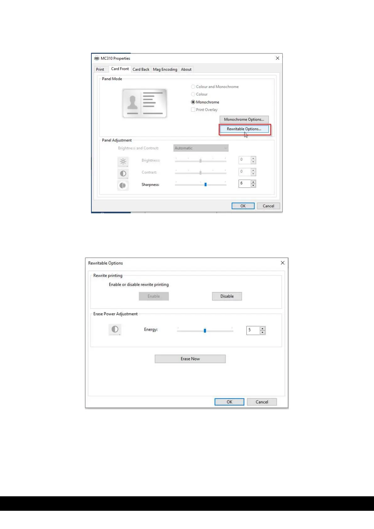 output, the re-writable option is activated in the printer. Click OK.