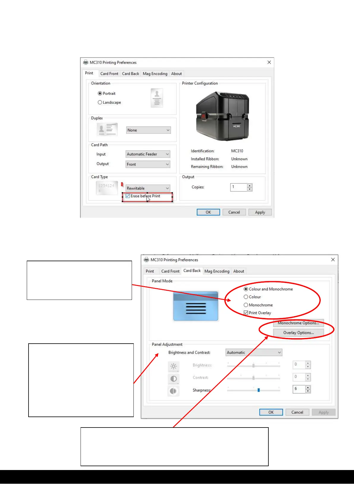 Step 5: Once rewritable option is activated in printer, come back to print tab of MC310 printer properties. Select