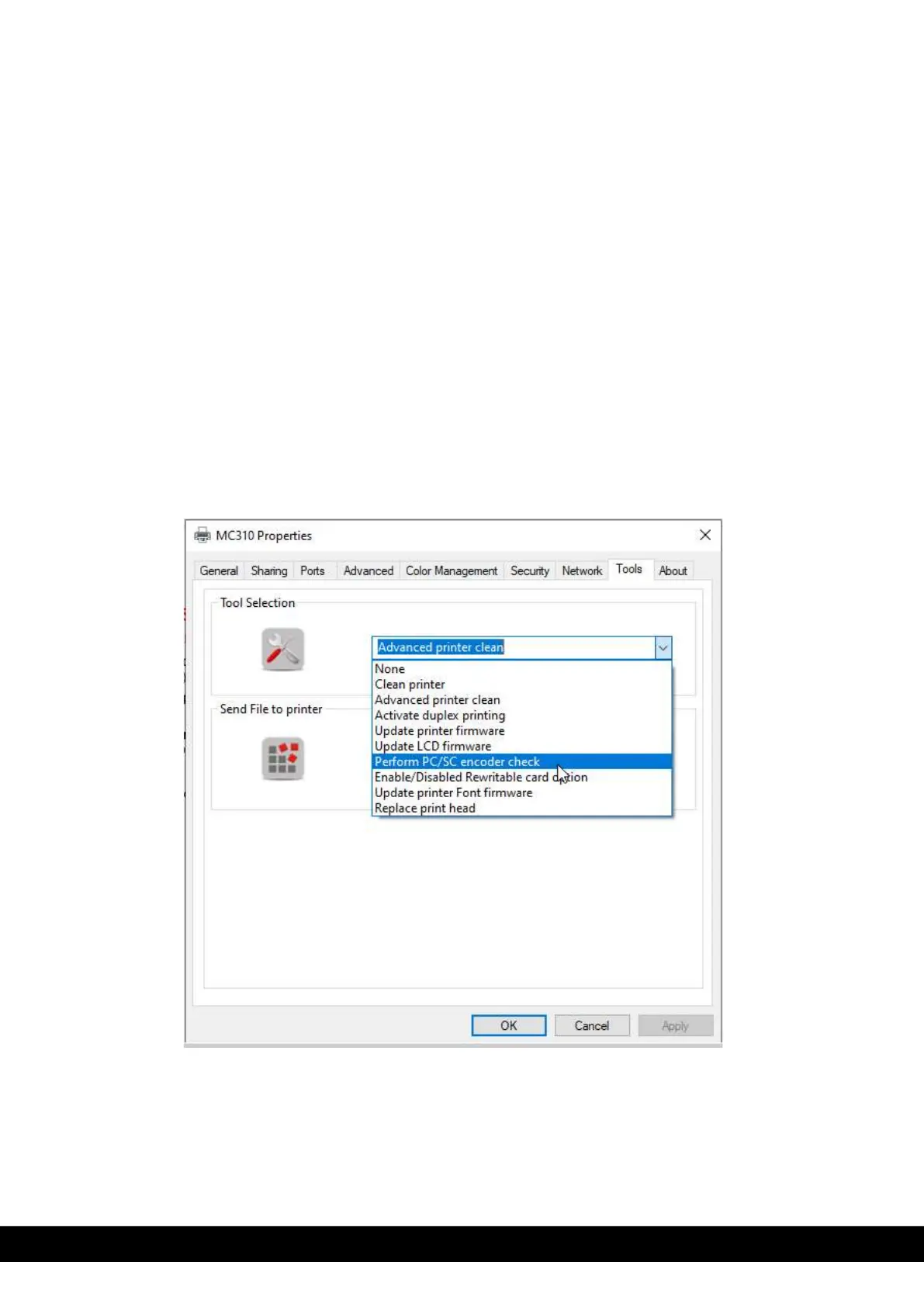 Note: The test can only be performed with MC310 printer installed with Dual interface module PR10300003.