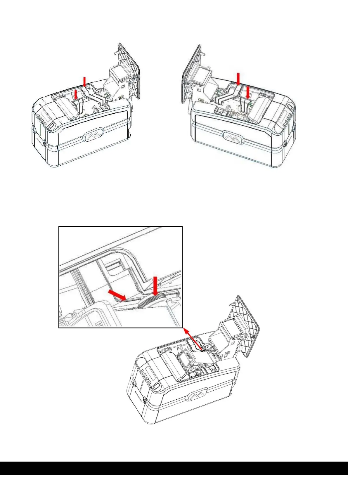 Ribbon carrier should be positioned inside the Right & Left Guide cores as illustrated below
