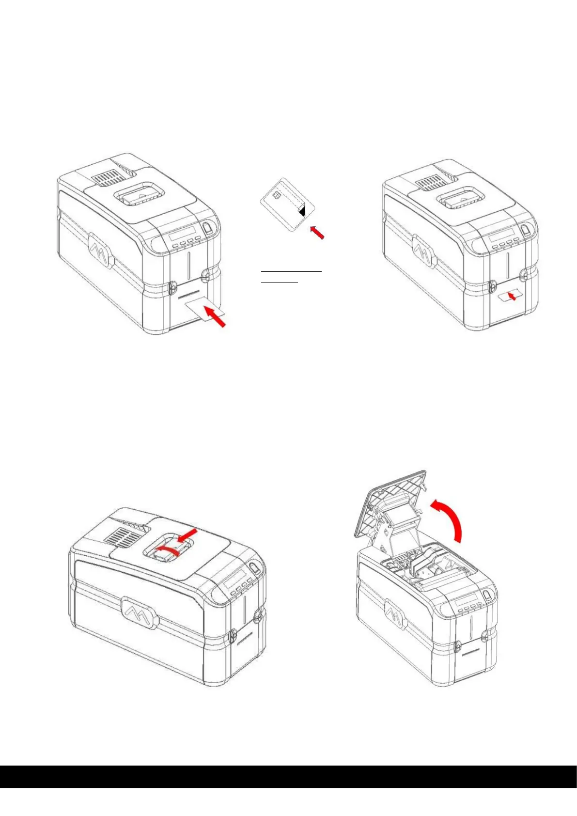 The manual card feeder is always ready for use and is prioritized. It is suggested that it can be used when