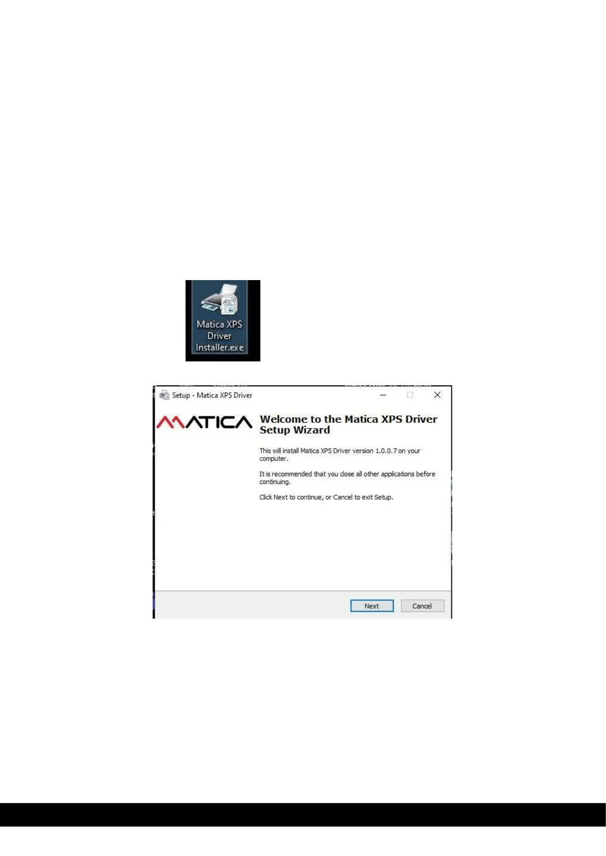 Double click on the Matica XPS Driver installer.exe application to setup the Wizard.