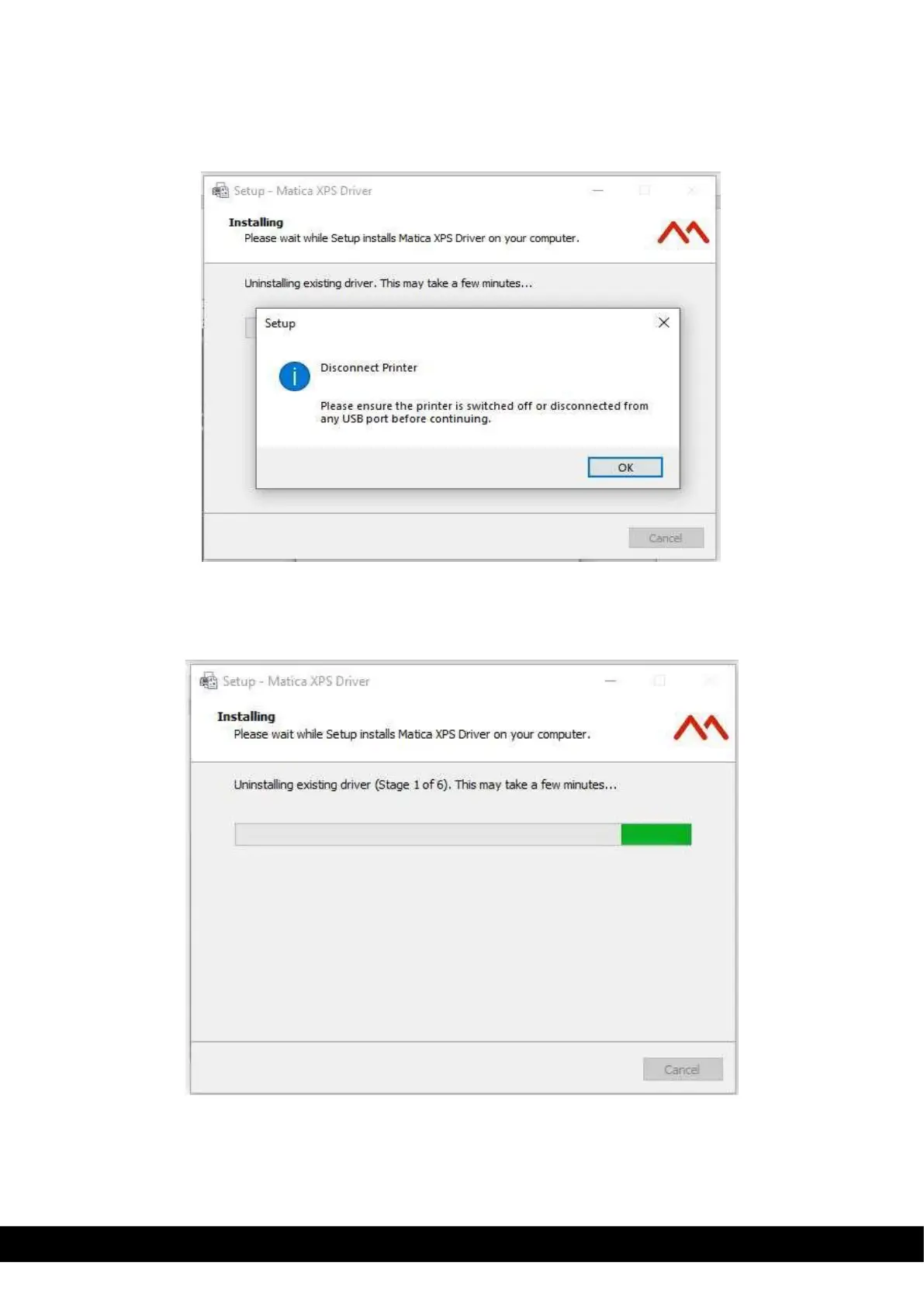 A Dialog box appears to switch off the printer & disconnect from any USB port of PC/laptop.