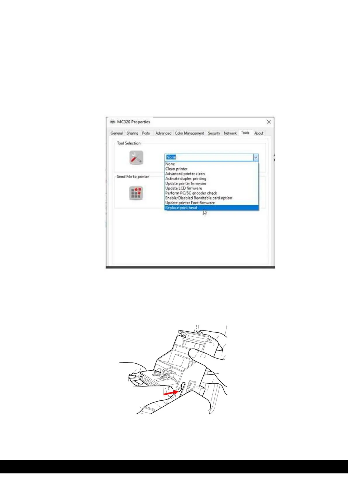 To perform the Printhead replacement, select ‘Replace Printhead’ from the Tool menu,