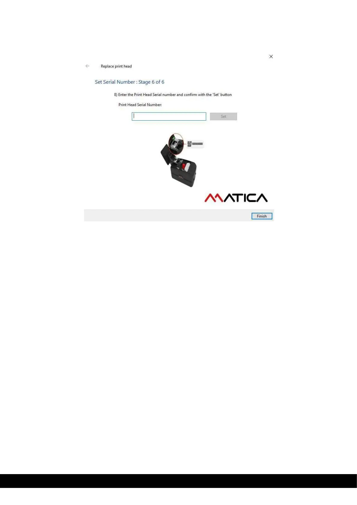 5) Click ‘Finish’ to complete the Printhead replacement operation