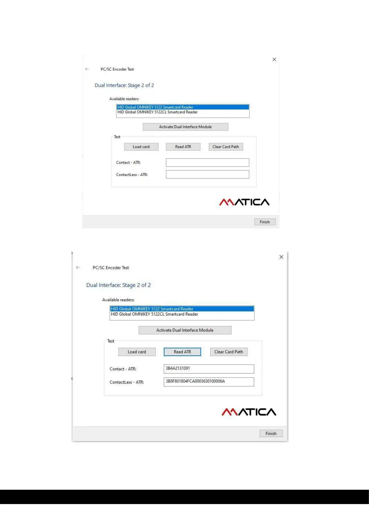 To conduct the test, click load card & card move to dual interface click Read ATR. The software