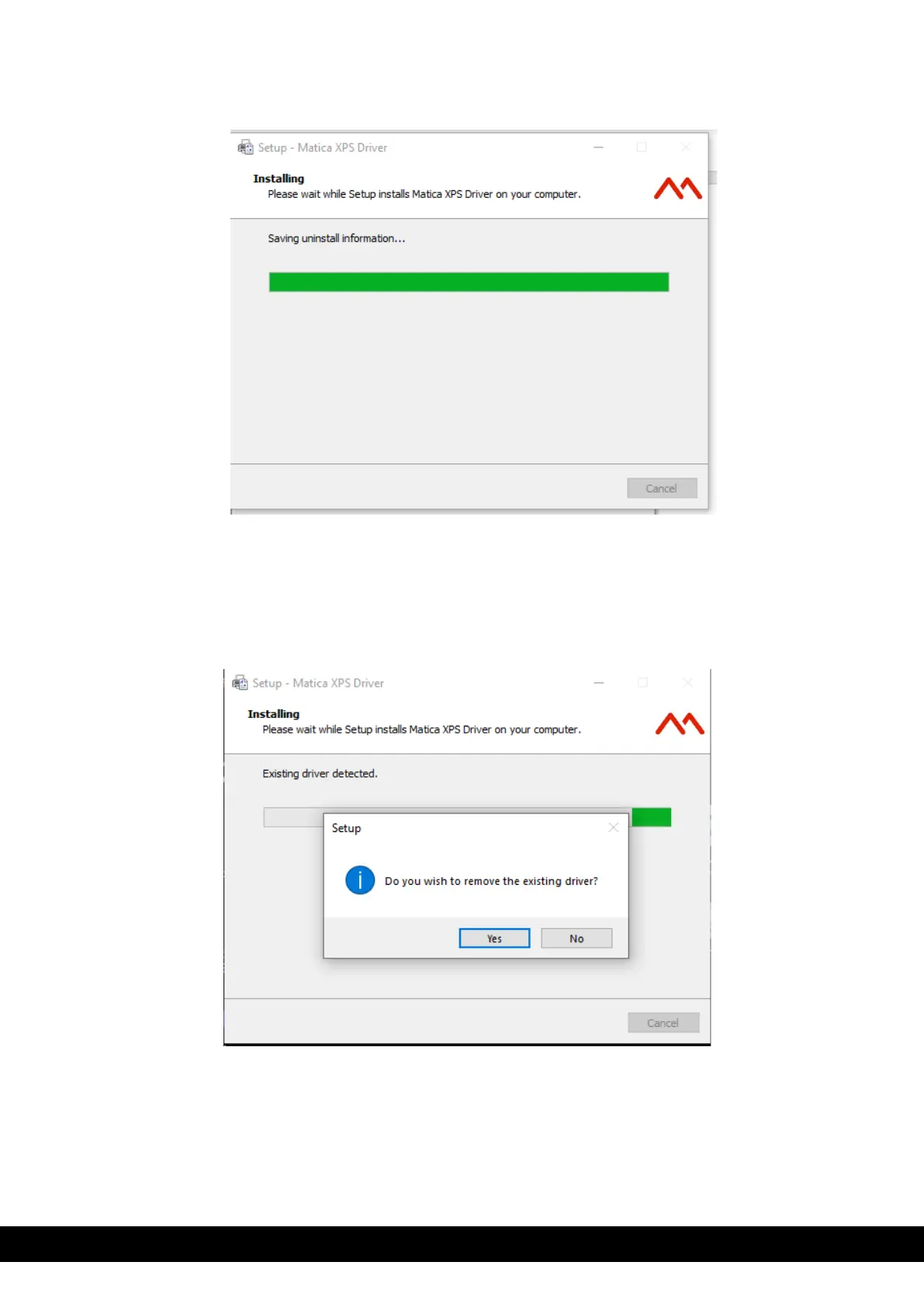 existing driver. Click ´Yes´ as it is recommended to remove any current version of the driver.