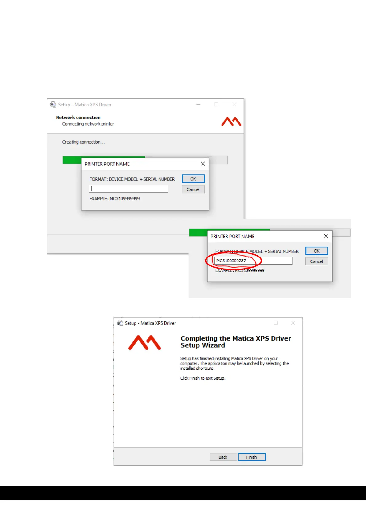 14) Click ‘Finish’ to complete the Matica XPS driver setup.