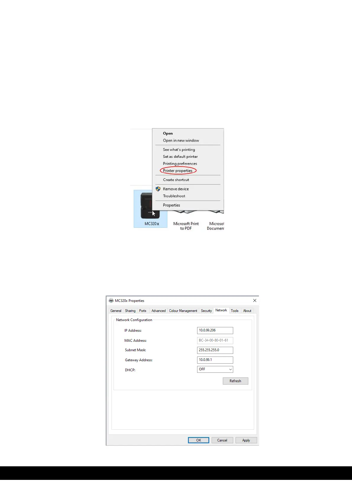 3. Go to devices & printers and right click on MC320x printer icon. Select printer properties from the drop-