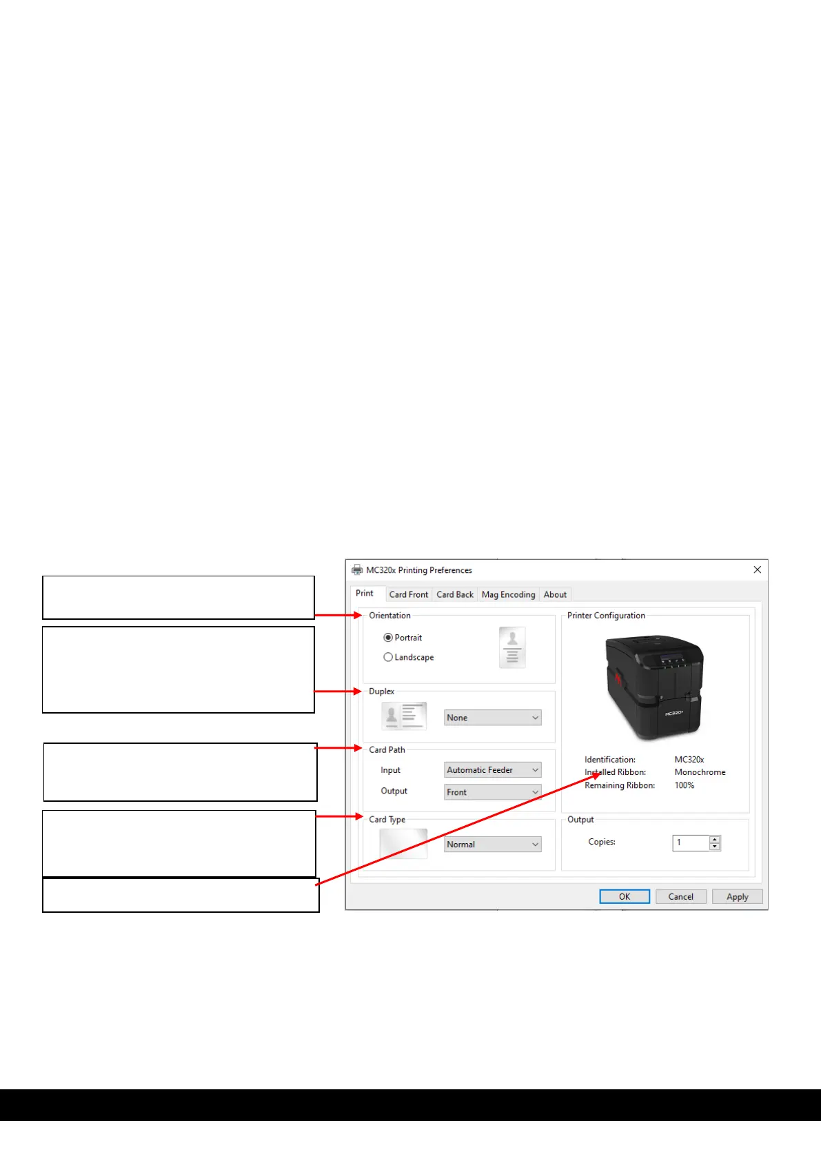 6.1.1 MC320x Printing preferences