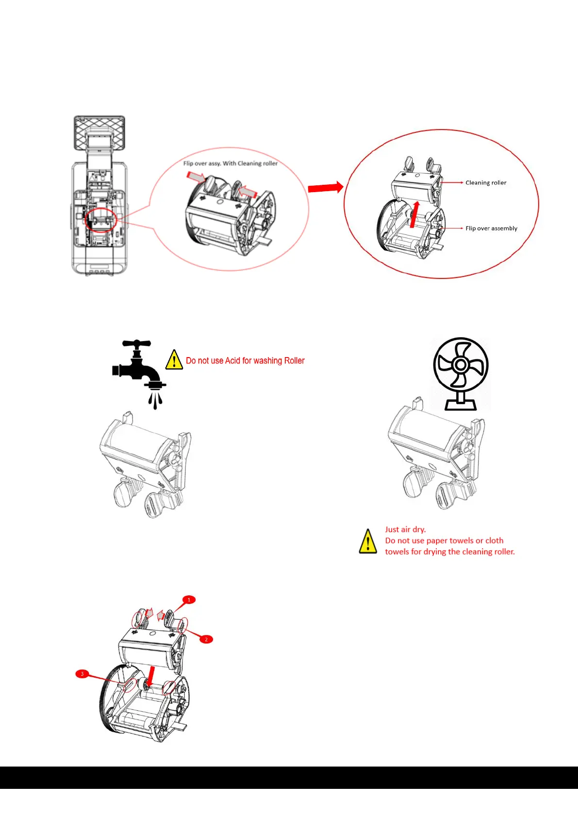 Gently clean the roller with water only. 7) After cleaning, dry the roller thoroughly.