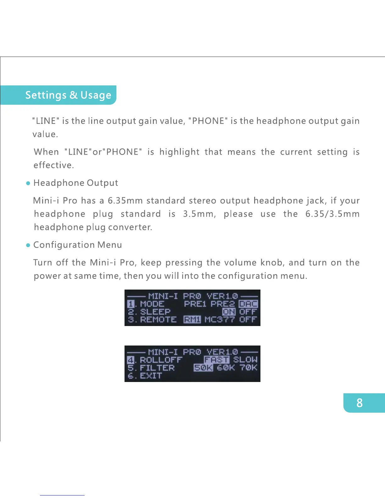 Matrix Audio Mini-i Pro - Headphone Output; Configuration Menu