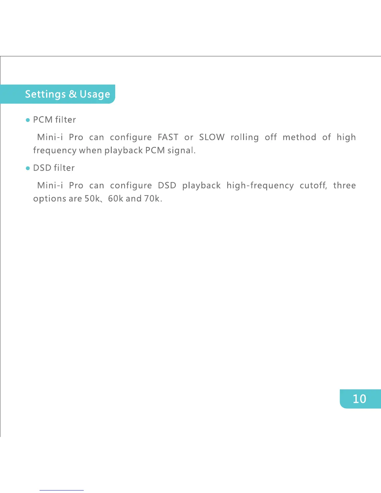 Matrix Audio Mini-Pro - Audio Filter Settings