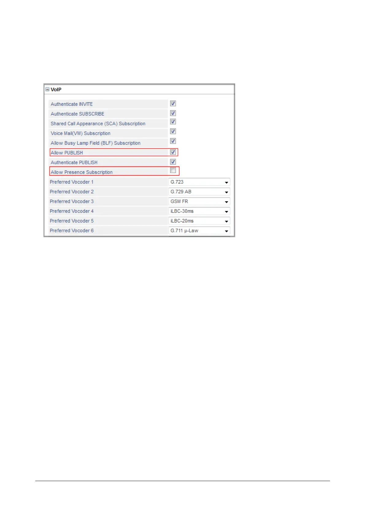 By default Allow Presence Subscription is disabled. To enable PUBLISH and Presence Subscription,