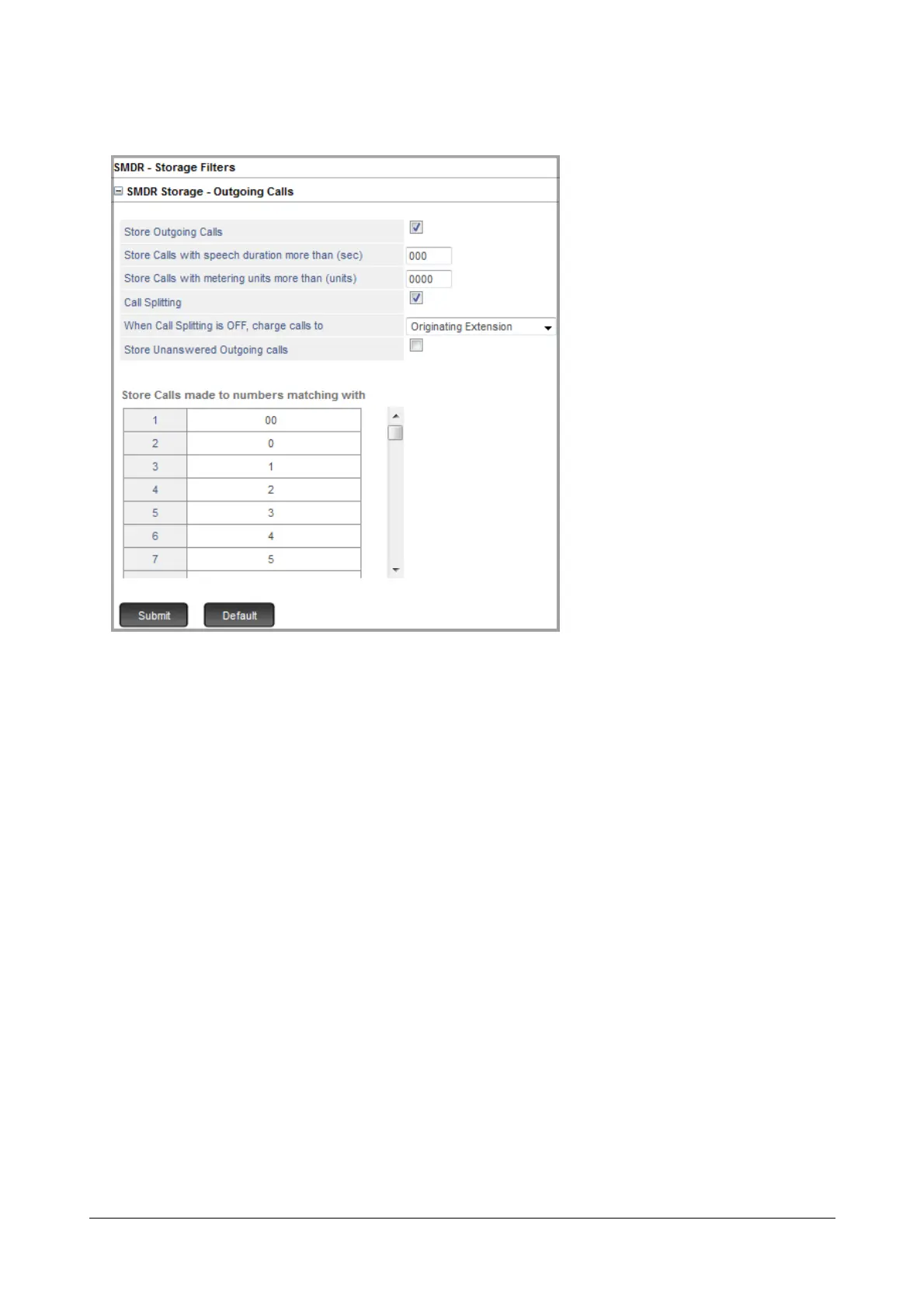 • To configure storage filters for outgoing calls, click SMDR Storage - Outgoing Calls to expand,