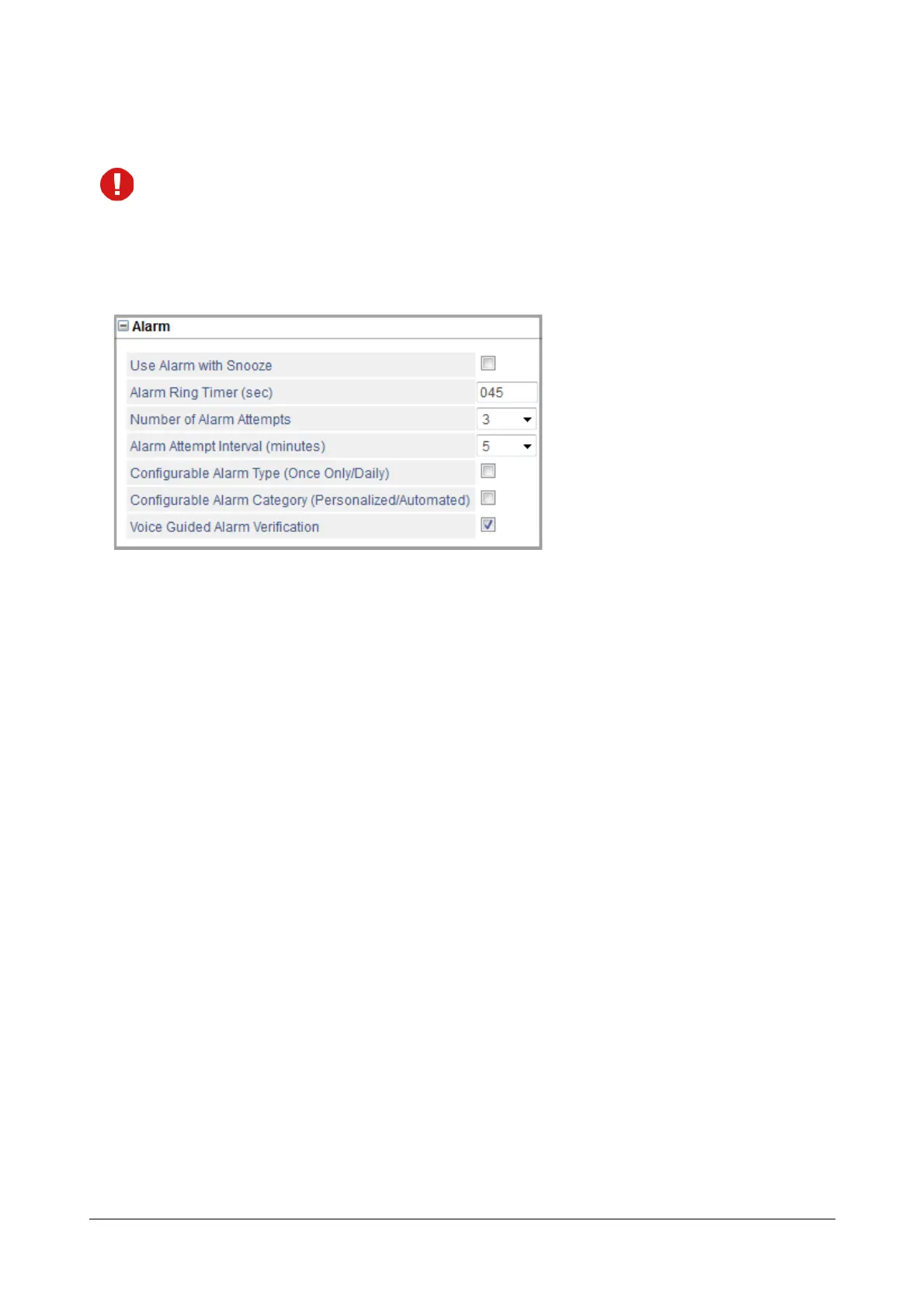 • Voice Guided Alarm Verification: Enable this flag if you want to enable extension users to confirm the