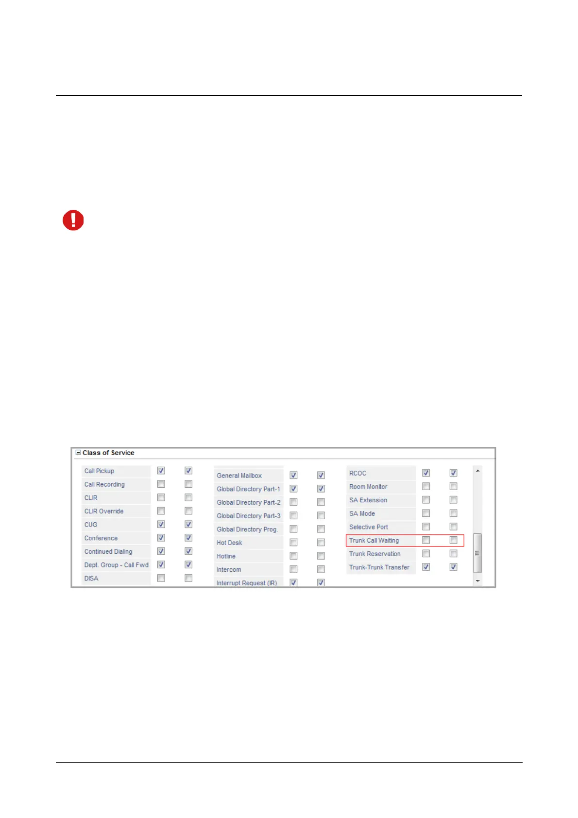 extension. By default, Trunk Call Waiting is disabled in the Class of Service of all Extension types: SLT, SIP. You
