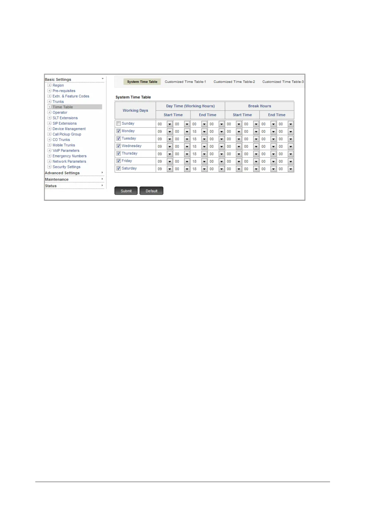 If the System Time Table suits you, retain it. You may redefine the Working days and Working hours. You