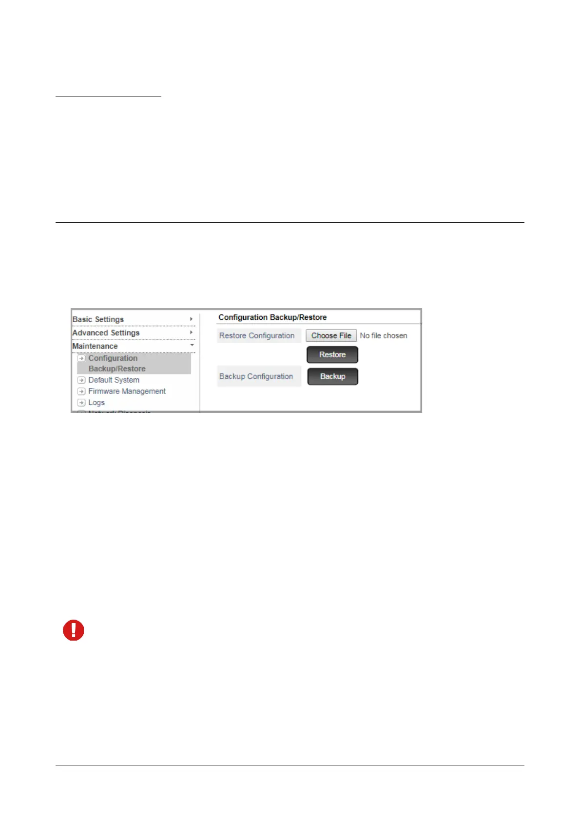 • To restore configuration files from any hard drive to the system, Restore Configuration option is