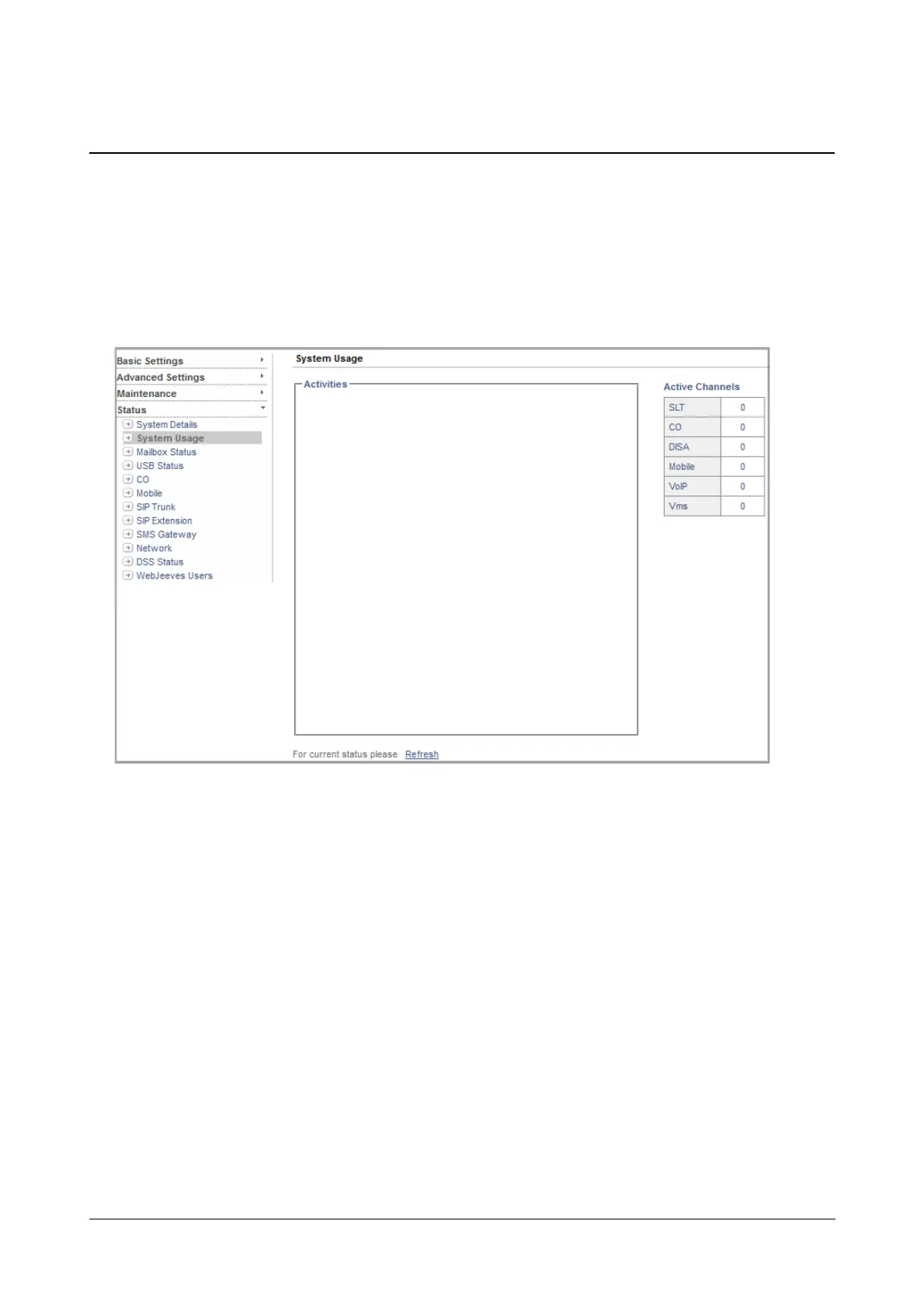 System Usage displays the status of the calls along with the ports and trunks involved.