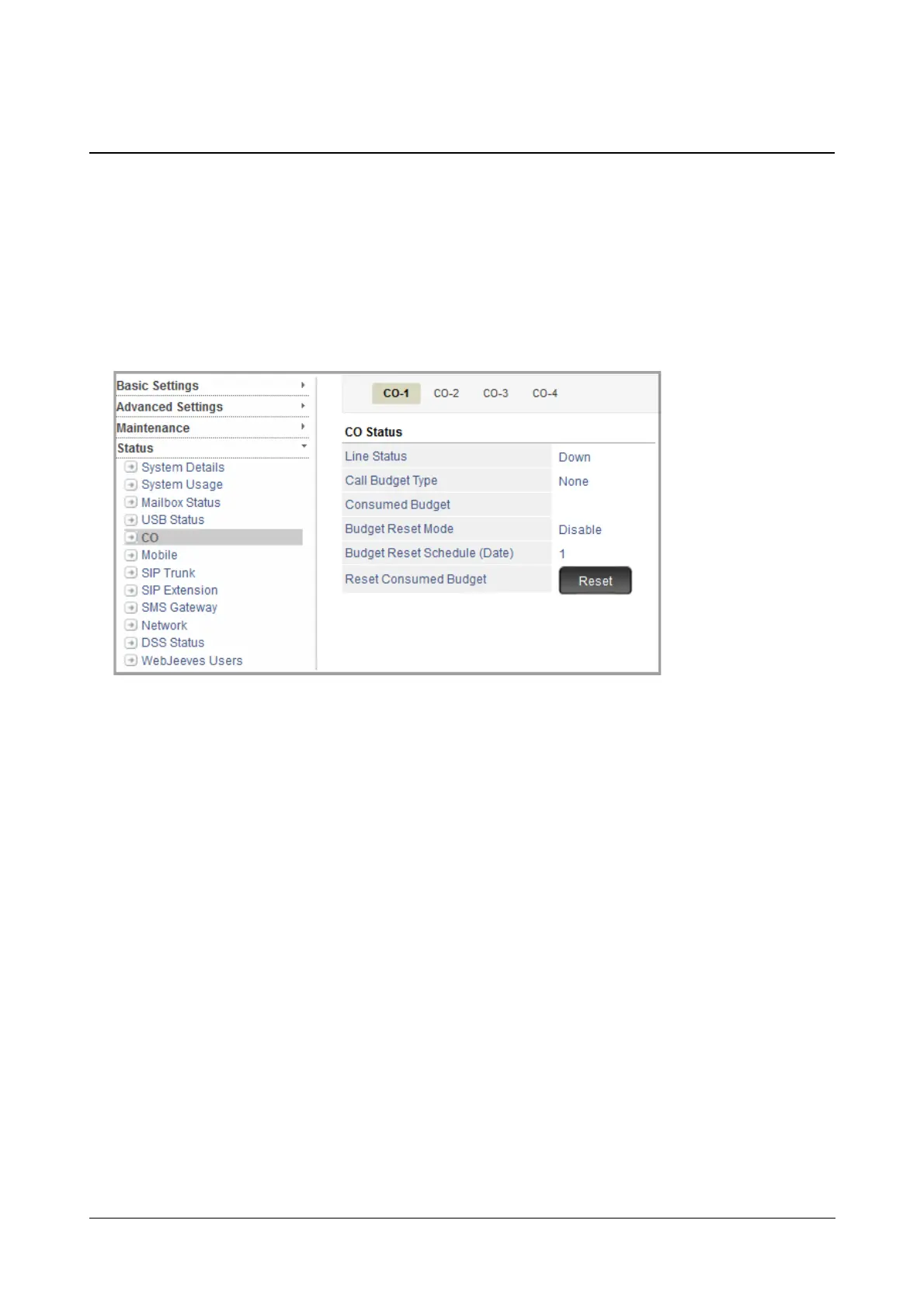 Similarly, to view the status of other CO trunks, click the respective tab.