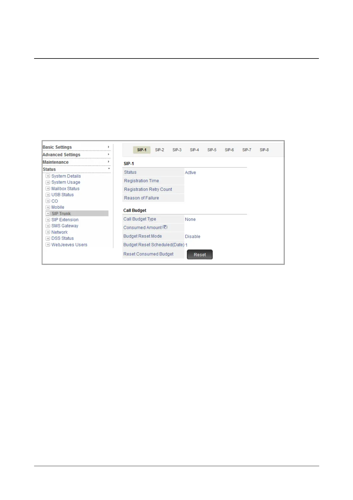 Similarly, to view the status of other SIP trunks, click the respective SIP Trunk tab.