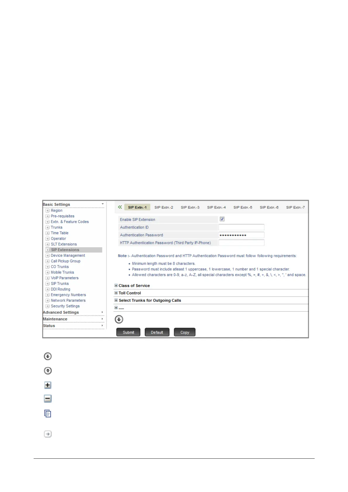 • SIP Extension Settings and the Extended Phone Settings as per the type of Extended Phone you have