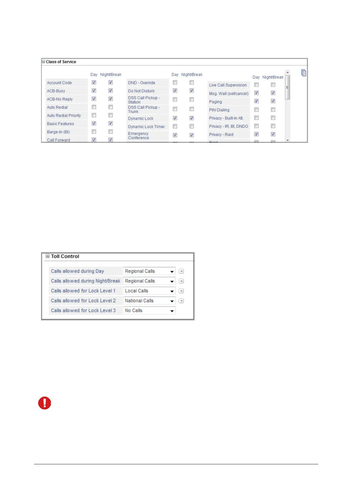 • Select the type of Calls Allowed during Night/Break: All Calls, No Calls, Local Calls, Regional Calls,