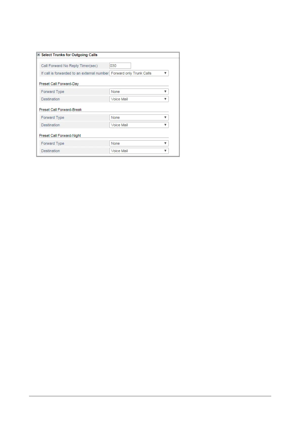 • Select the Forward Type for Preset Call Forward - Day. You may select: