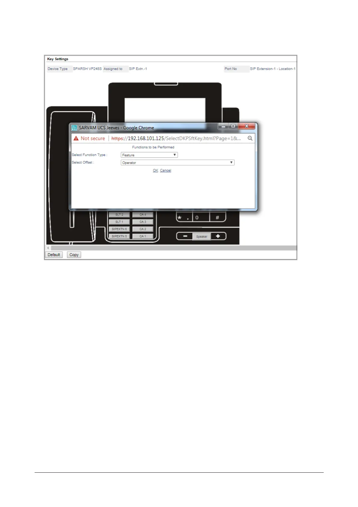 • In the Select Function Type list box, select the function to be performed by the key. For example, you