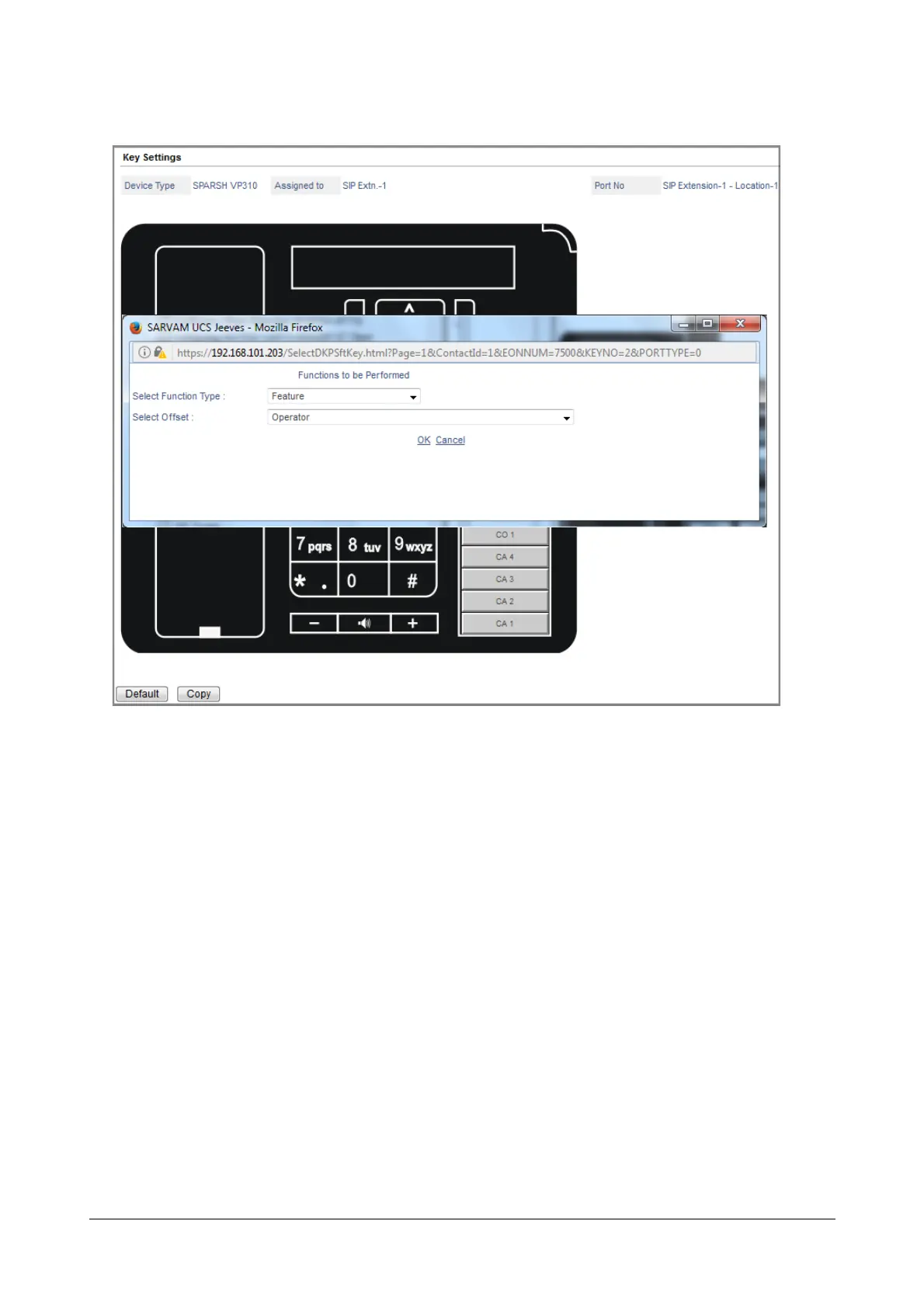 •In the Select Function Type list, select the function to be performed by the key. For example, you want to