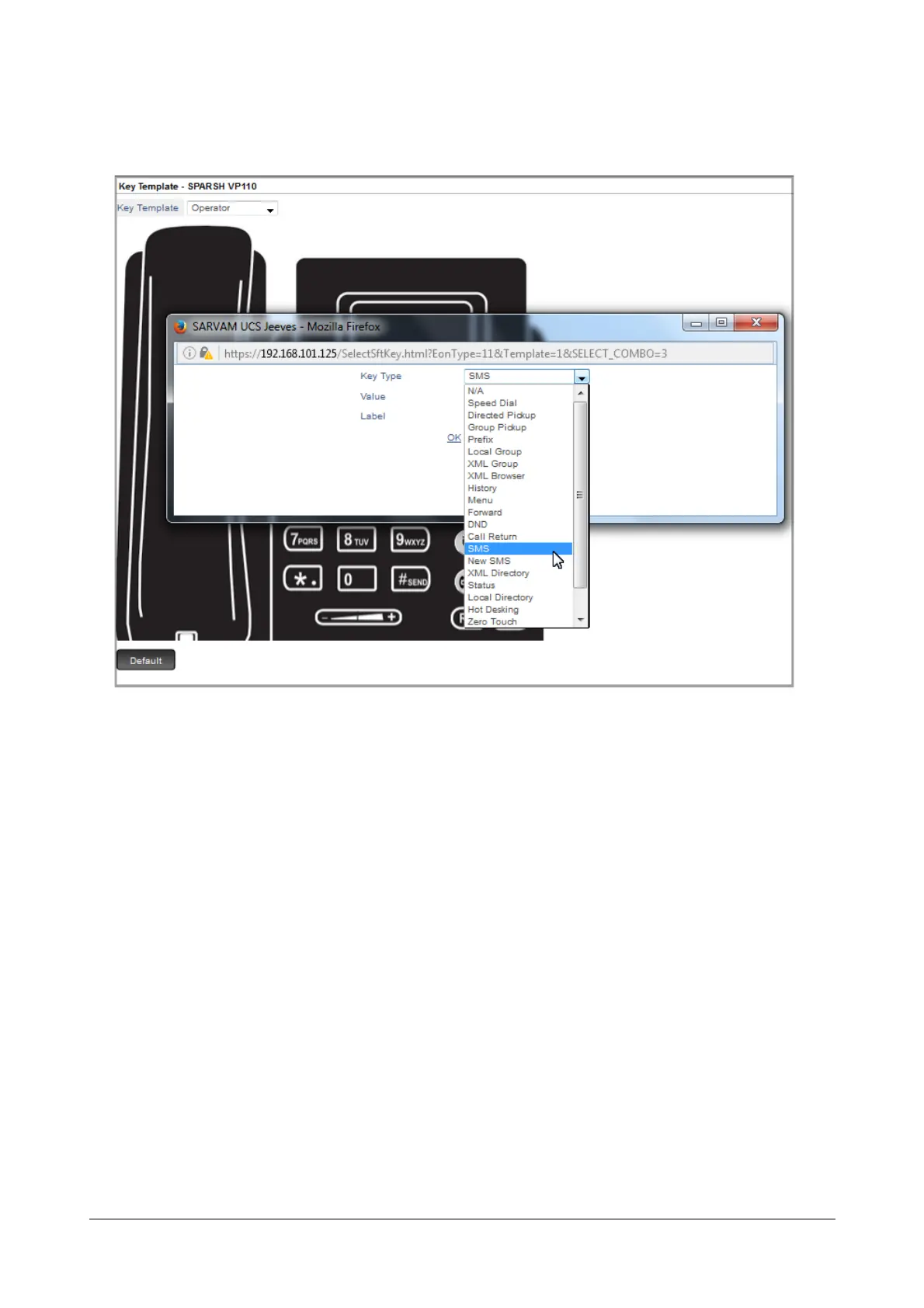 Softkey 1 to send a SMS, select Key Type as SMS.