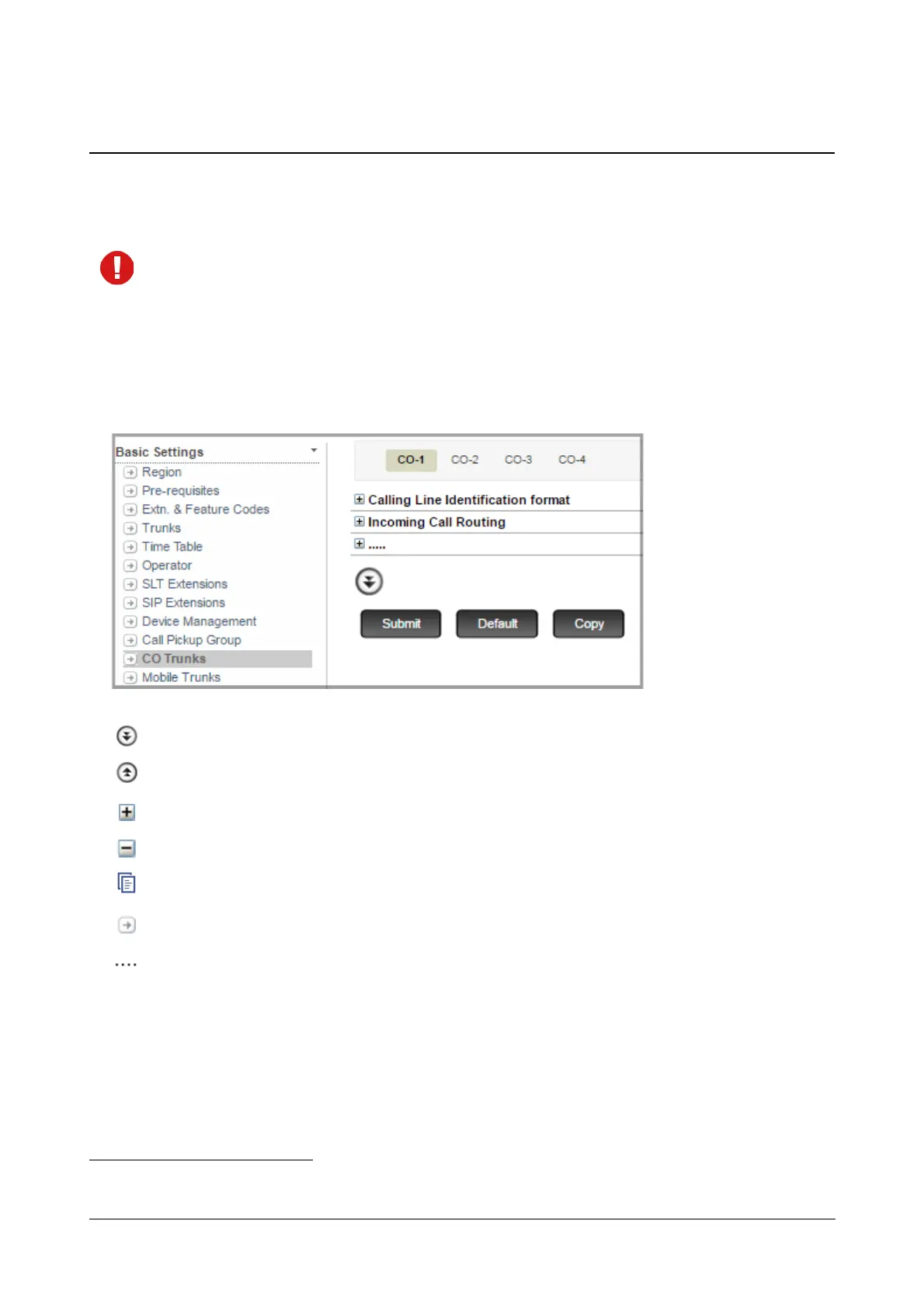 To assign default values to all the parameters of the CO Trunk, click Default.