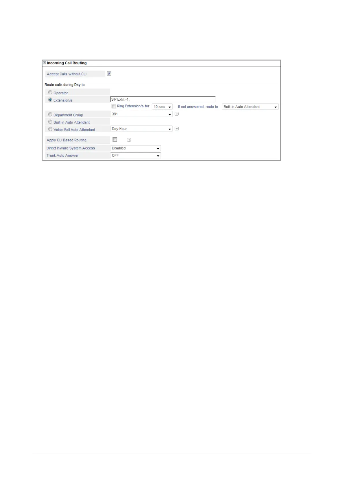 • To allow incoming calls without CLI to land on the SIP Trunk, select the Accept Calls without CLI check