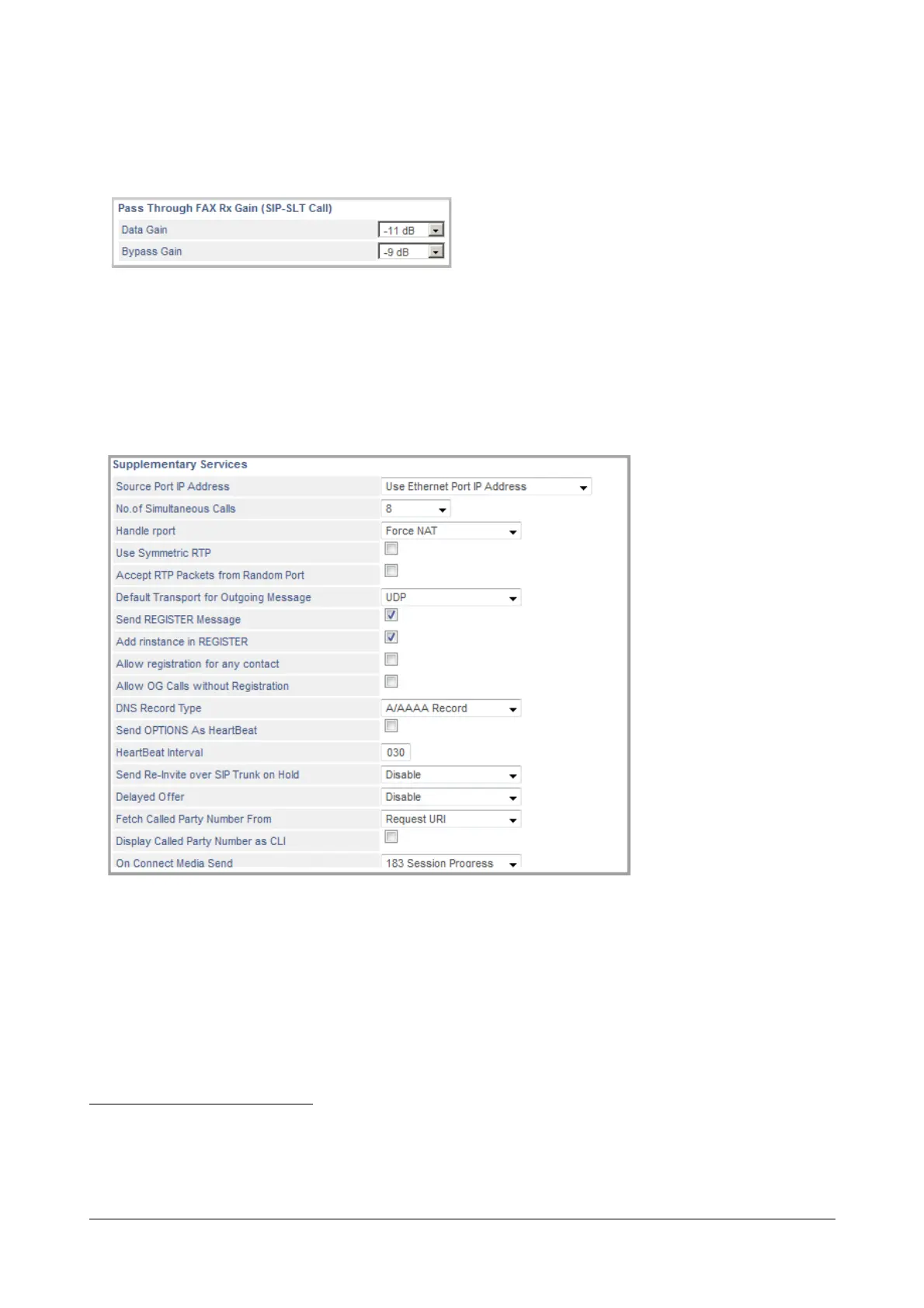 and Bypass Gain. SARVAM UCS supports Fax Receive Gain for SIP to Digital Trunk calls as well as SIP to SLT Calls.