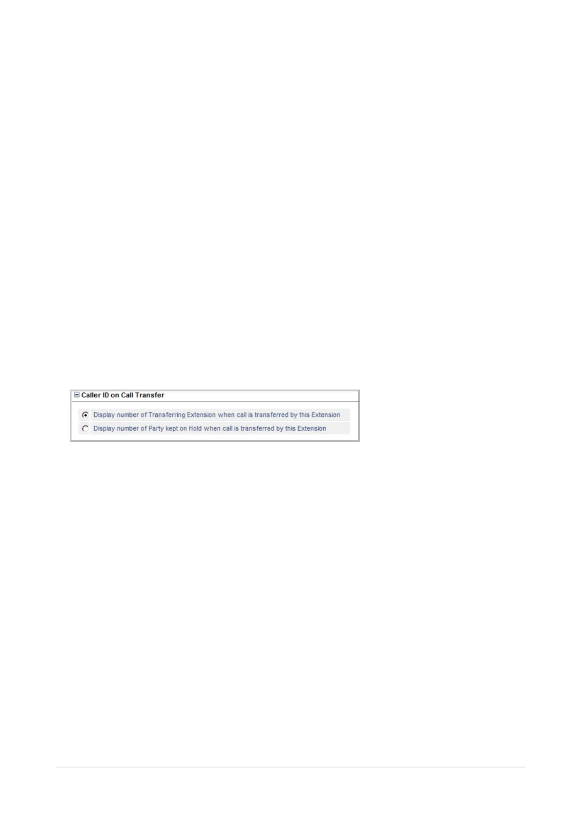 You can choose whether the system should display the CLI of the ‘Held Party’ or the CLI of the ‘Transferring Party’
